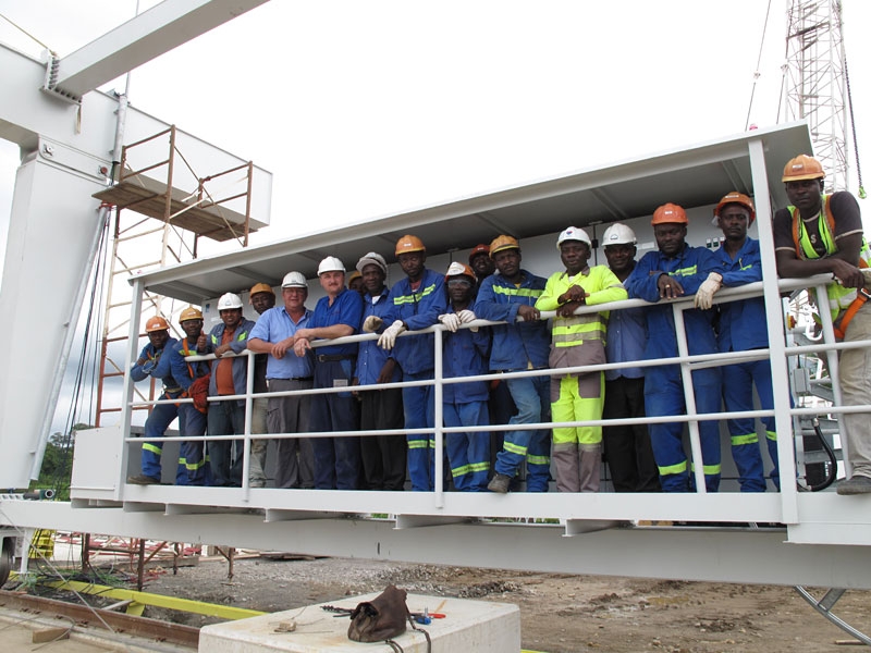 EDEA Barrage / CameroonPeriod: 2008-2011 Customer: BESIX S.A., Belgien Country: Cameroon Technical Description: The EDEA Hydro-electric Power Station at the Sanaga river is an important power-utility in Cameroon not only for the local aluminium factory Alucam but also for the whole south of the country. The plant operates 14 turbines totaling 263 MW. With the refurbishment of the first three turbines it was also decided to replace the mechanical tilted plate weir with hydraulic driven radial gates controlled by a SCADA system just 8m down-stream of the existing weir. The new weir contains 6 radial gates (18m wide x 8m high), with upstream stop-logs, 3,5m wide access bridge to the piers and a 2x20 ton dual hoist gantry crane for setting the stop-logs and conducting general maintenance. To reduce the effect of cavitation the bays have been steel lined from the sill beam 6m down-stream The scope of works by DSD NOELL consisted of